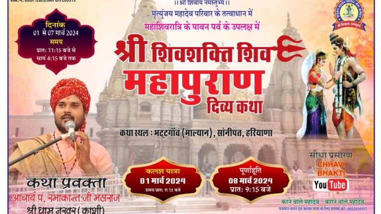 शिव महापुराण दिव्य कथा 1 मार्च से 8 मार्च, सोनीपत हरियाणा